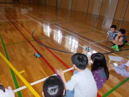 ゴムを10cm伸ばしたときと20cm伸ばしたときでは、車が進む距離が違うのかな。