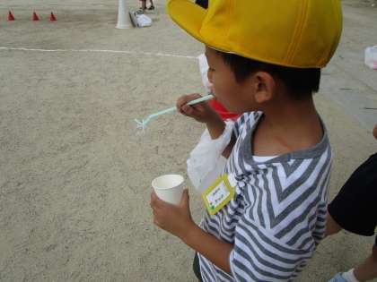 「一緒にお描きしよう。」と友達と声を掛け合う姿や「どうやったら、大きなシャボン玉ができるかな。」と遊び方を工夫している姿が見られました。