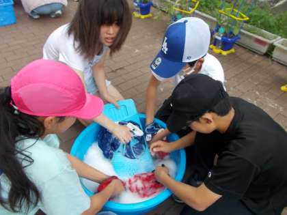 洗濯板を使うのが初めてだという6年生でしたが、とても上手に使っていました。
