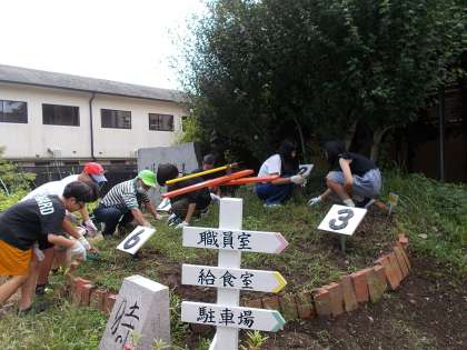 2日の委員会活動の時間に、地域の中庭整備委員会のみなさんと環境委員会で花時計の草抜きを行い、すっきりとした花時計になりました。暑い中ご協力いただきありがとうございました。