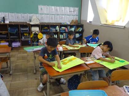 「ぐるぐるライオン」という本のお話を聞いて絵を描きました。