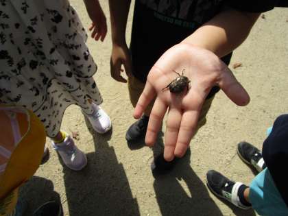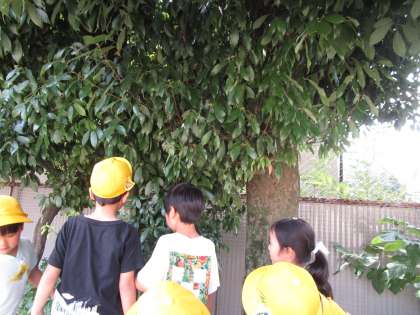 今日、1時間目に学校の中にいる生き物を探しに行きました。バッタやカナブンを捕まえたりアリの巣を見つけたり、いろいろな生き物を見つけることができました。「どんな生き物と仲良しになりたいかな。」と尋ねると、たくさんの生き物の名前が出てきて、笑顔いっぱいでした。
