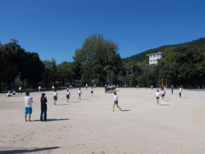 いよいよ来週は本番です。6年生も運動場に出て、演技の位置確認などをしました。きりりと引き締まった表情は、さすがです。さて、どんな演技を見せてくれるのでしょうか。とっても楽しみです。