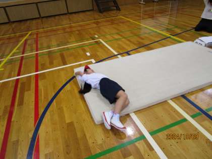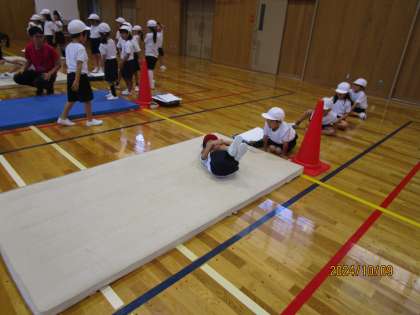 「ゆりかご」や「丸太転がり」、「前転がり」などいろいろな技に挑戦しています。