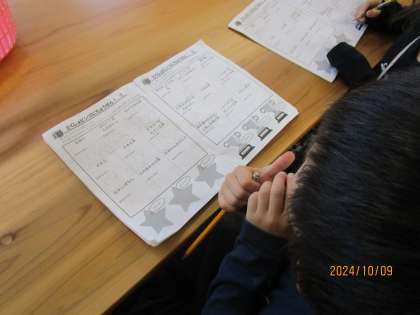 学校図書館へ行き、読書ノートを使って「読書ビンゴ」に挑戦しました。
