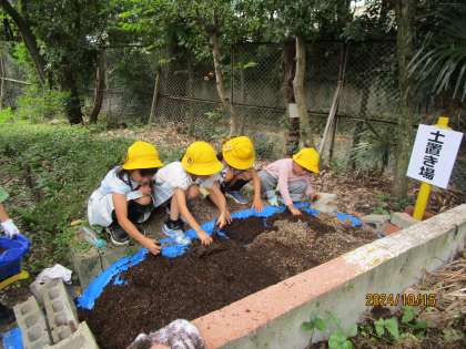 <1年1組>次のお花を植える準備をしました。