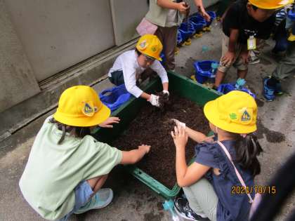 アサガオの植木鉢に残っていた土を出して、植木鉢の中を空にしました。土を出してみると根っこがたくさん伸びていて、取り除くのが大変でした。「次は、どんなお花を育てようかな。」そんな声が聞こえてきました。秋からは、チューリップを育てていきたいと考えています。