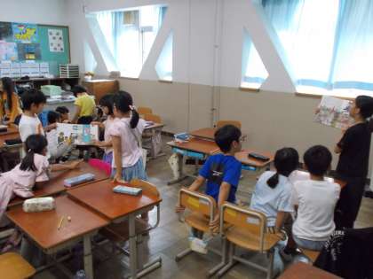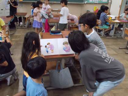 一年生に楽しんでもらうために声色を変えたり、間を空けたりと工夫していました。