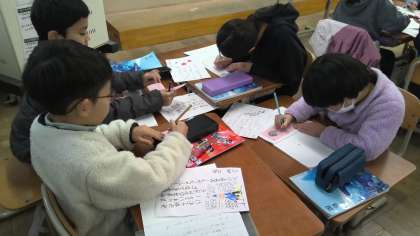 学習した詩の工夫を使って自分たちでも詩を作ってきました。