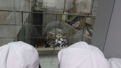 ゴミピットを覗き、大量のゴミがクレーンで持ち上げられているのを見て、クレーンで「ごみを何度も持ち上げ、放す」を繰り返すことで、水分をできるだけ無くし燃えやすくすることや、ごみを燃やした後に出る排ガスは様々な機械を通った後、きれいになって煙突から出ていくことなど多くの気付き・発見がありました。