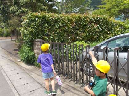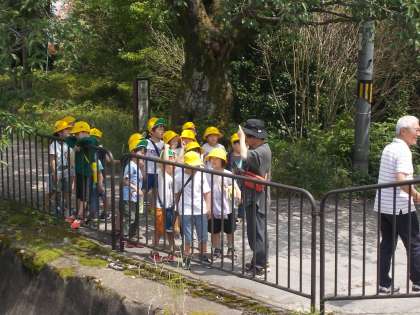 安朱小学校の中の探検を終え、校区に出てみました。