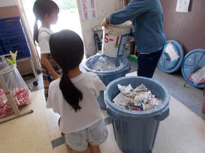木曜日を除く毎日、昼休みの後、掃除をしています。自分たちの教室や廊下、特別教室や階段など、色々なところをほうきや雑巾できれいにします。ゴミは、しっかりと分別します。