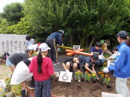 地域の方と一緒に花時計の整備を行いました。環境委員会の5・6年生が、花の苗を一株一株、丁寧に植え替えてくれました。これから暑い夏に向かいます。水やり、よろしくお願いしますね。