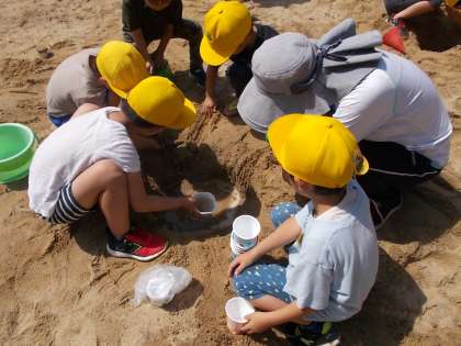 「川が流れたよ。あっちの池とつなげてみよう。」