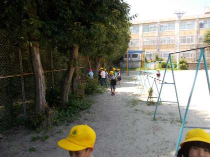 教室では、「鉄棒が暑くなっていたよ。」「バッタを見つけたよ。」