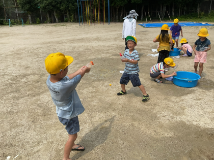 「夏の暑い日に、水を使って遊びたい。」と、子ども達のやりたいことを