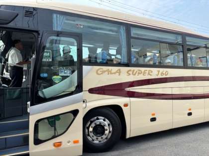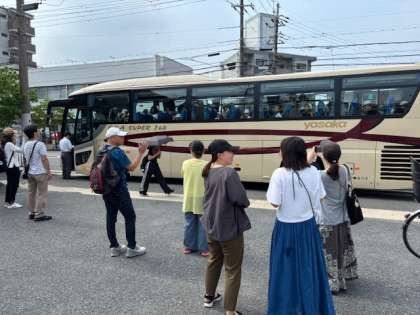 バスに乗り込みました。お見送りの保護者の方に「いってきます!」