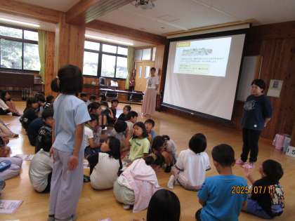 気候ネットワークの方に来ていただいて、環境学習をしました。地球温暖化が起きる原因、環境のために私たちができることについて、とても分かりやすく説明してくださいました。子ども達はとても熱心に話を聞いていて、今日からエコを考えた生活をしていきたいという気持ちになったようです。