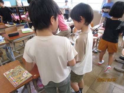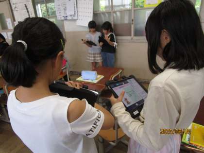 今日は、それぞれが祇園祭について調べたことをロイロノートにまとめ、iPadを見せながら友達と交流しました。7月1日から1か月も続いていることや病魔退散を祈る「御霊会(ごりょうえ)」が起源だったことなど、初めて知ることも多く、より祇園祭に興味をもったようでした。
