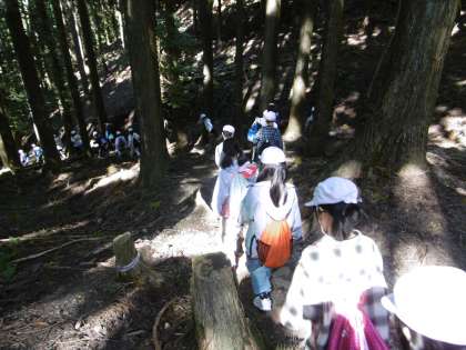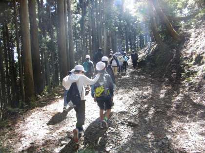 下りは、細くて石がゴロゴロ転がっている山道。最後まで気を抜かず、友達と励ましあって下山しました。