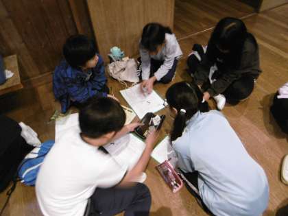 宿泊棟に戻って、今日の振り返りをグループでしました。2日目のめあては「挑戦」!