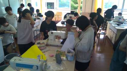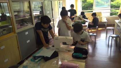 6年生は、周囲と手順を確認しながら、慎重にミシンを使っていました。