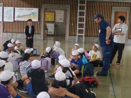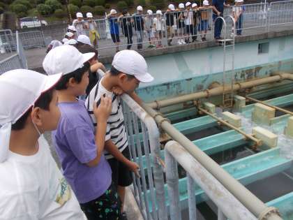 社会科の学習で蹴上浄水場に見学に行きました。実際に水がきれいになっていく過程を蹴上浄水場の担当者の方が分かりやすく教えてくださりました。特に、沈殿池できれいにした水を暑さ70cmの砂と暑さ20cmの砂利に通して、さらにきれいにする「急速濾過池」の説明をキットを使って実演しながら説明していただきました。子ども達は「おおー。」と声を上げながら、理解を深めていました。この経験を生かし、「くらしと水」の学習に役立てていきます。