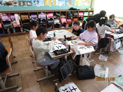 「へん」と「つくり」の組み合わせ方に気をつけて「土地」という文字を書きました。特に「地」の「へん」と「つくり」の大きさの違いや「とめ・はね・はらい」にも気をつけながら書きました。自分の課題に合わせて、必要な練習用紙を選んで取り組んでいます。うまく書けると、うれしそうに友達と見せ合っていました。