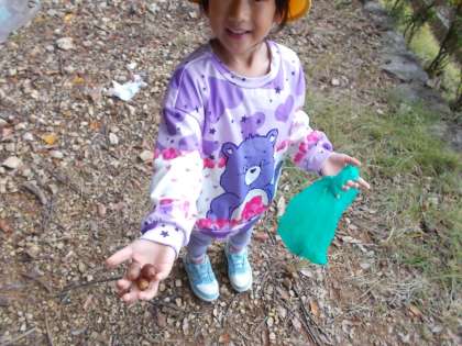 「クリスマスのかざりをつくりたいから、まつぼっくりがないかさがそう。」