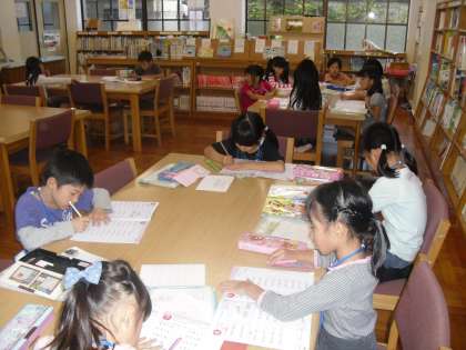 今日から1年生が放課後まなび教室に参加します。参加カードを出して,自分の名札をもらい,みんな静かに宿題をやり始めました。自学自習の習慣をつけるようがんばっていきましょう。