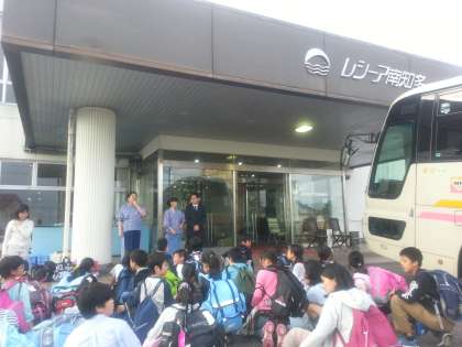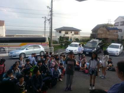 科学館の見学を終えて,予定通りに今日の宿舎に到着しました。ホテルの玄関前で,入館式をしました。このあと入浴・夕食・夜の集いと続きます。