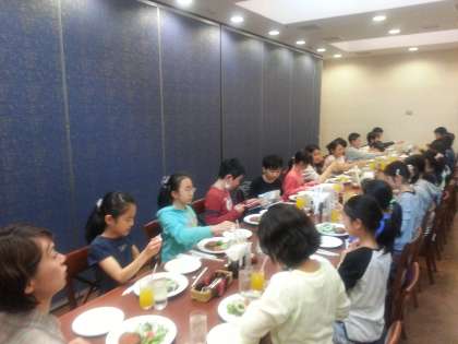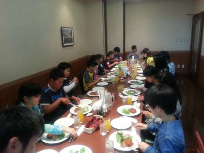 昼食はテクノミュージアム館内のレストランで食べました。ナイフとフォークを使ってちょっぴり緊張気味です。