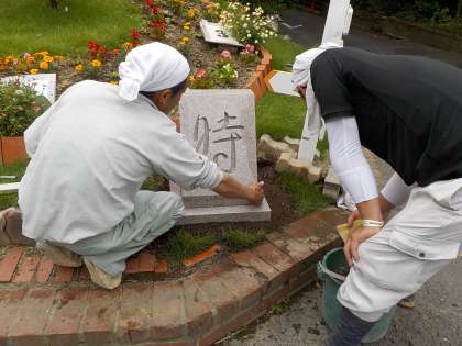 「時」という文字が刻まれた石碑は,過去・現在・未来を紡ぐ象徴として輝いています。