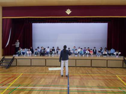 今まで教室で練習していた分、体育館に行くと声が小さくなったり、緊張して早口になってしまったり子どもたちも苦戦していました。