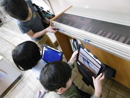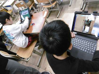 「すきまちゃん」の好きな隙間を探し、ロイロノートで写真を撮って、友達と交流しました。