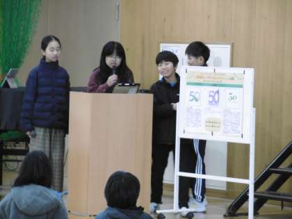 最初に、「山科区誕生50周年記念ロゴマーク」の投票の呼びかけを計画委員がしてくれました。その後、放送委員会から話がありました。お昼の放送アナウンスの体験コーナーでは、「やってみたい」と手をあげる児童がたくさんいました。「5年生になったら、放送委員会にはいりたいです。」と感想を発表してくれました。