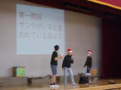 後半には、リーダーの6年生達が中心となって体育館でクリスマスにちなんだクイズや遊びを進め、みんなで楽しく交流することができました。