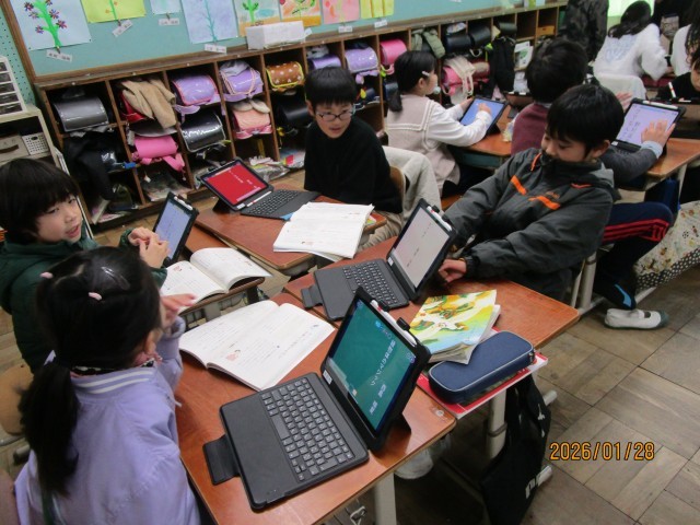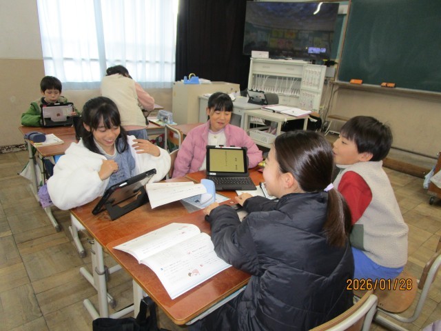 友達が作った詩の表現の面白さに楽しんでいました。