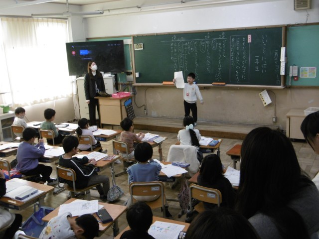最後の授業参観は、国語の学習を見ていただきました。1年間でできるようになったこと、頑張ったことを友達に発表しました。たくさんの保護者の方に参観していただき、子ども達はとっても嬉しそうでした。