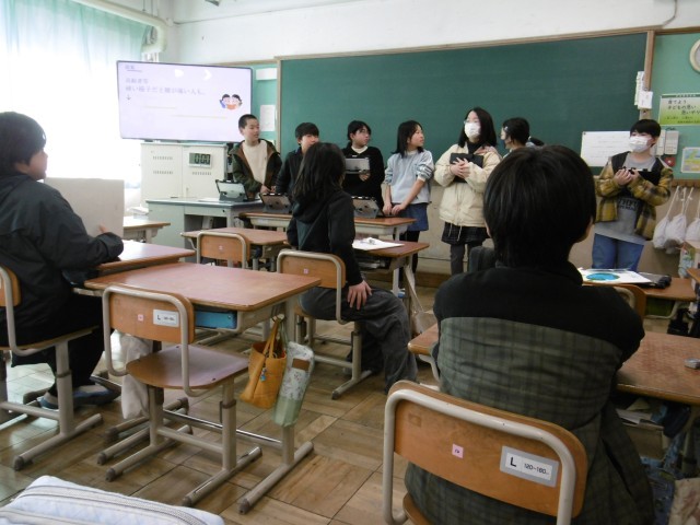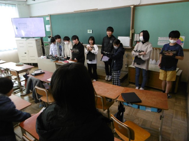 総合的な学習の時間に進めているミータス山科の提案の発表練習を見ていただきました。「山科の遊び場」「山科図書館」「駅前周辺のまちづくり」について、調査して見えてきた課題を踏まえ、新たな提案を考えています。友達から改善点のアドバイスをもらっただけでなく、保護者の方からも拍手や感想をいただきました。来週の区役所での発表をより良いものに仕上げます。