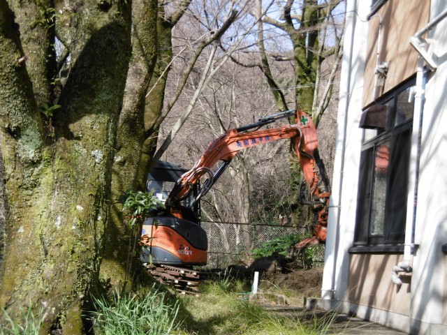 北校舎の西側の木が枯れてきたので、伐採していただきました。電線に触れそうなほど伸びた枝もバッサリと切ってもらいます。