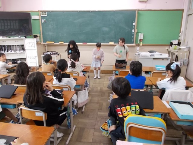 音楽に合わせて、けん玉パフォーマンスをしました。