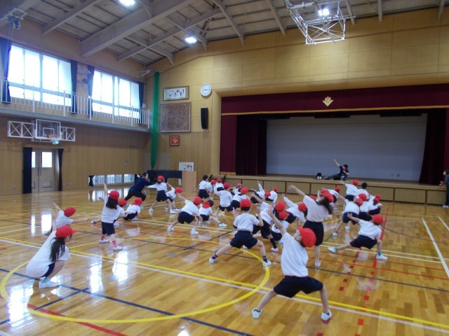 体育の授業で体ほぐしをしました。個人で活動したり、グループで協力したりしながら、楽しく体をほぐしました。