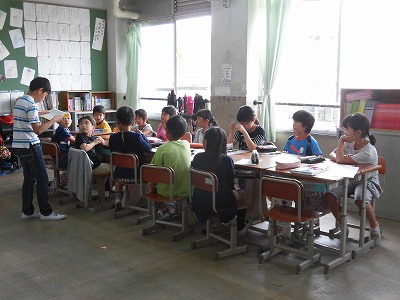 協力して,班のカードを完成させます。