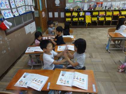 ペア活動になるといつもニコニコです。