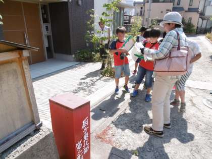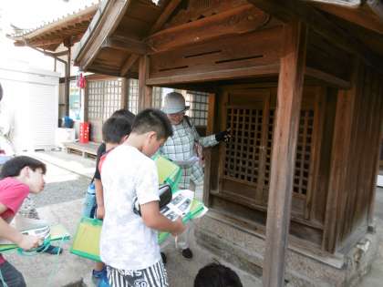 子ども達は,ボランティア先生のお話を真剣に聞きながら,お地蔵さんを見つけていきます。同じ形のものではなく,とても珍しいものや,お化粧をしているものなど,全部で6体のお地蔵さんを見つけました。