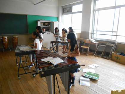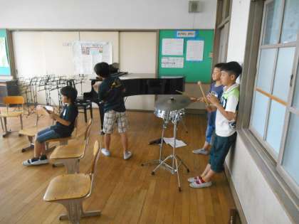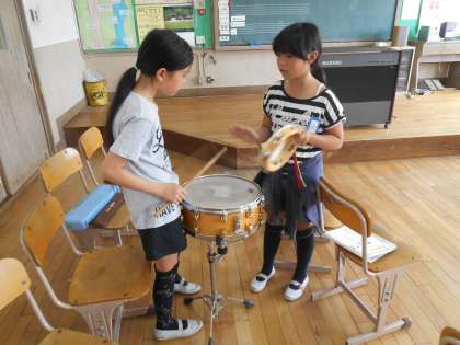 打楽器の音色や音楽の仕組みを生かして,リズムアンサンブルをつくろうと,音楽室に向かいました。