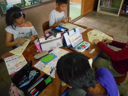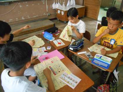 練習布を使って,玉結びや玉どめの練習からはじめています。