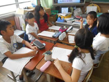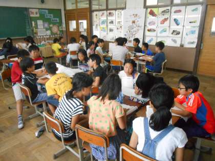 ワークブックにかき込みながら,自分の体験や感想を発表したり,「働くこと」について意見を出し合ったりしました。