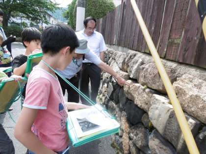 初めは,ボランティア先生が「これですよ」と子どもたちに説明されていましたが,途中から,「車石みつけた」と子どもたちが見つけていきました。